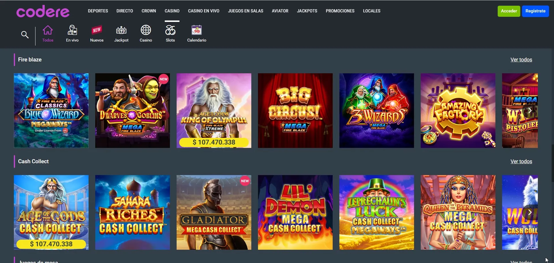No encontramos una sección claramente etiquetada como “Originals” propia del operador. En lugar de ello, la estrategia parece centrarse en integrar títulos populares de terceros dentro de una experiencia unificada entre codere online y su ecosistema de apuestas.